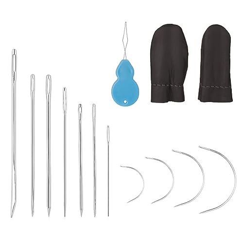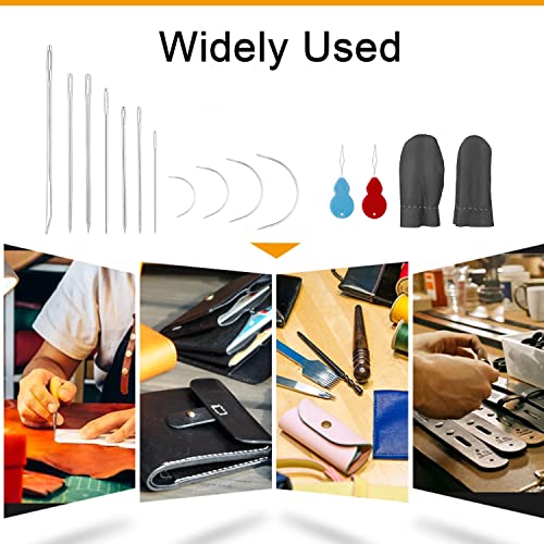 【Contenuto Della Confezione】6 ago per cucire,1 ago a punta triangolare,4 ago curvo,2 infilatori,2 copridito in pelle.Possono soddisfare le tue diverse esigenze di cucito.