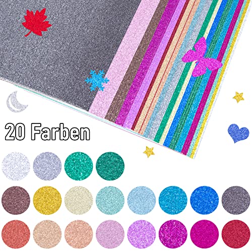 20 colori di carta glitterata: carta colorata in cartone in splendidi colori - oro, argento, bronzo, rosso, nero, blu, rosa, verde e molti altri fantastici colori.