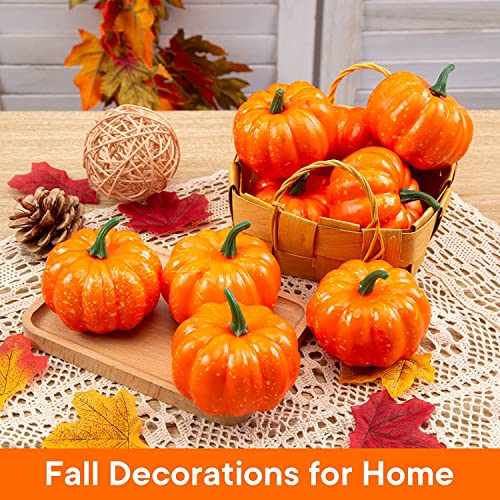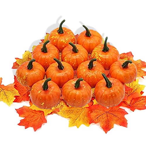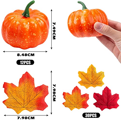 VGOODALL Set di 42 zucche artificiali, 12 mini zucche finte con 30 foglie di acero realistiche per decorare decorazioni autunnali per Halloween fai da te per artigianato, decorazioni del