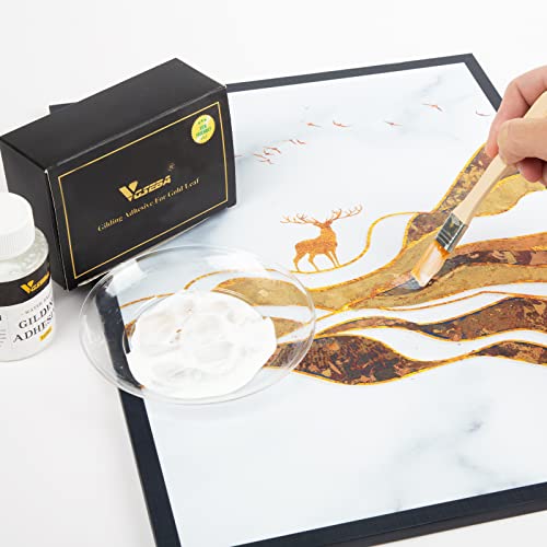VGSEBA Adesivo per doratura, Colla a Base d'Acqua di Resina epossidica per Foglie d'oro per Artigianato, Arte, Uso del Legno, Confezione in Scatola (100 ml + Pennello + Guanti)