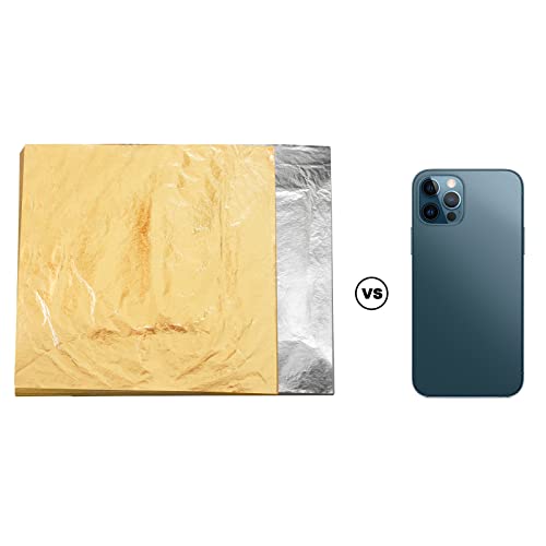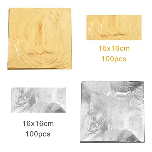 VGSEBA Fogli Foglia Oro - 100 Foglia Argento e 100 Foglia Oro per Doratura, Arte della Pittura, Artigianato, Decorazioni di Mobili (16x16cm)