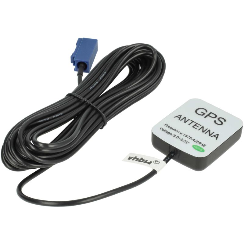 Antenna GPS con connettore Fakra per navigatore Lunghezza cavo: 5m Con base magnetica per una tenuta sicura Grazie all'ottima fattura, questa antenna GPS può essere facilmente collegata alla Sua autoradio con sistema di navigazione integrato. Amplifica la ricezione o sostituisce l'antenna difettosa del Suo navigatore. Il cavo lungo 5 m consente un posizionamento flessibile e versatile dell'antenna. La base magnetica permette una tenuta salda ad esempio sul cruscotto o nascosto nel vano portaoggetti. Prodotto nuovo, in perfette condizioni e in confezione originale. Accessorio di alta qualità di vhbw. vhbw. Contenuto della spedizione: 1 x antenna GPS Compatibile con navigatori con connessione Fakra Ricambi e accessori convenienti e di alta qualità: è questa la promessa di vhbw. Con i nostri prodotti è possibile prolungare la durata di vita dei Suoi apparecchi elettrici, migliorarne o mantenerne il funzionamento.