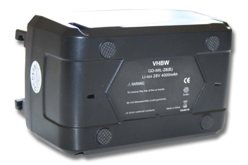 Vhbw Batteria compatibile con Milwaukee M28 WL LED luce, V28 BS sega a mano attrezzi da lavoro (4000mAh, 28V, Li-Ion)