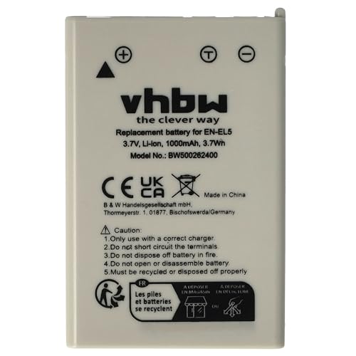 Vhbw batteria compatibile con Nikon CoolPix P5100, P6000, P80, P90, P100, S10, P530, P520 fotocamera digitale DSLR (1000mAh, 3,6V, Li-Ion)