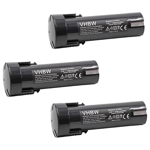 Vhbw 3x Batteria compatibile con Panasonic EY3652, EY3652DA, EY3652DR, EY503B, EY503BY, EY6220 attrezzi da lavoro (3300mAh NiMH 2,4V)