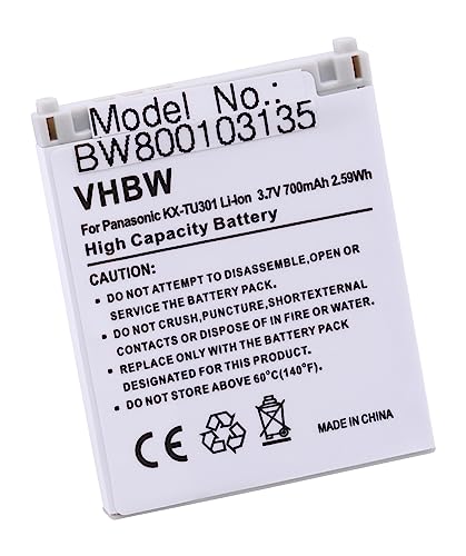 Vhbw batteria compatibile con Panasonic KX-TU301, KX-TU301 GME, KX-TU311, KX-TU320 telefono fisso cordless (700mAh, 3,7V, Li-Ion)