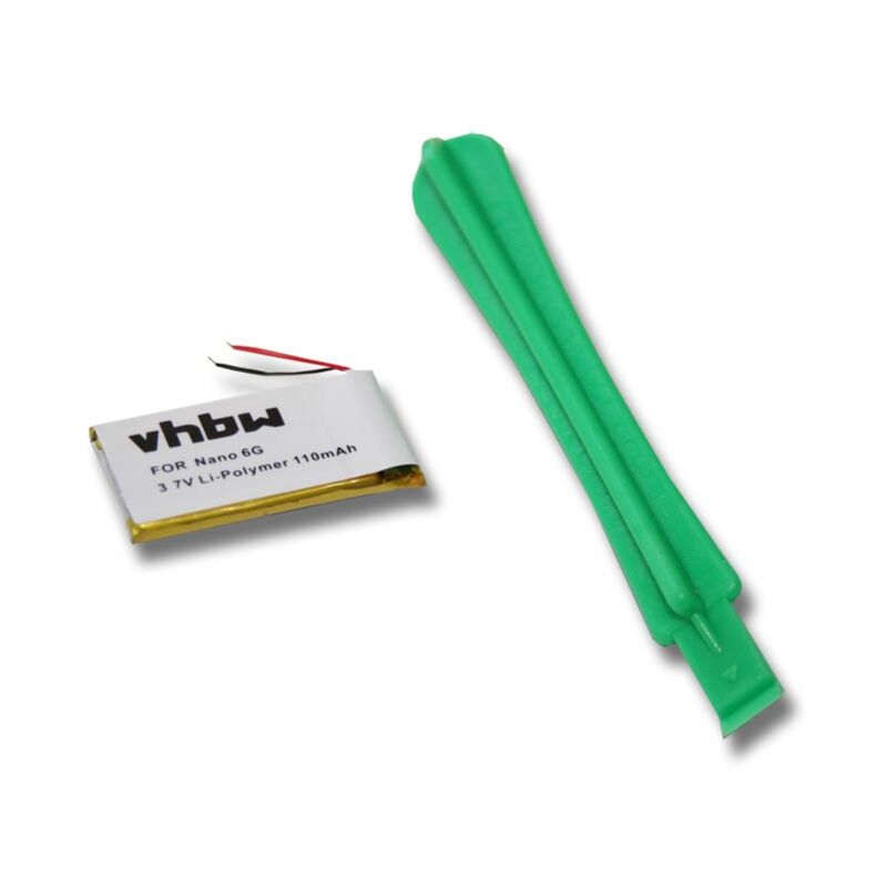 Vhbw - the clever way - Batteria ricaricabile di ricambio, compatibile e di alta qualità, ad alta capacità, per lettore MP3, video e music player, lettore musicale (Può trovare tutti i modelli corrispondenti qui di seguito) - La batteria può essere caricata con il Suo caricabatterie standard o con uno compatibile - L'utensile necessario per la sostituzione della batteria è incluso nell'ordine - Le nostre batterie ricaricabili soddisfano tutti i requisiti rilevanti per la sicurezza operativa CONTENUTO DELLA SPEDIZIONE: - 1x batteria ricaricabile - 1x utensile SPECIFICHE TECNICHE: - Tecnologia: Li-Poly - Capacità: 110 mAh - Tensione: 3,7 V - Energia: 0,41 Wh - Dimensioni (Lung. x Larg. x Alt.): 3,7 x 1,5 x 0,3 cm Per garantire la compatibilità, verificare se la batteria ricaricabile attualmente in uso è presente nell'elenco. SOSTITUISCE: - Apple 616-0531 Accessori e pezzi di ricambio di alta qualità. Per prolungare la durata di vita dei Suoi apparecchi elettrici.