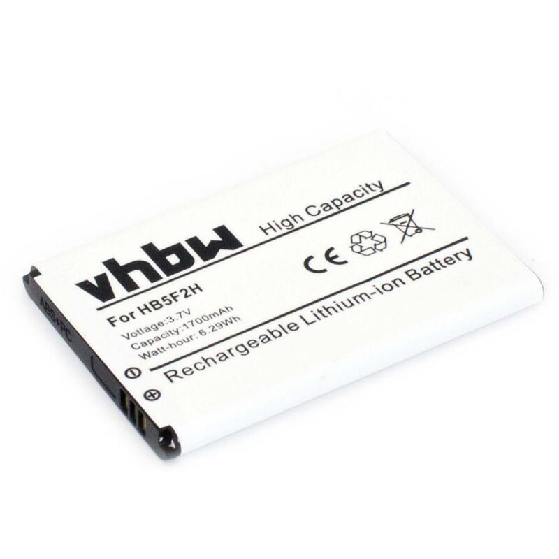 Batteria di ricambio compatibile per il Suo dispositivo. Ideale anche come seconda batteria per quando si è fuori. Può continuare a utilizzare il Suo caricabatteria. Merce nuova, confezione originale. - Prodotto non originale, compatibilità con alta capacità garantita dalla casa produttrice vhbw. Contenuto di spedizione: 1 x batteria Dati tecnici: tecnologia: Li-Ion capacità:: 1700mAh tensione: 3,7 V potenza: 6,29 Wh colore: nero Compatibile con i seguenti modelli: Huawei E5170 Home Net Box Huawei E5330, E5336 Huawei E5372, E5373, E5375, E5377 Huawei EC5377 Vodafone R215 Mobile Per una compatibilità sicura si prega di controllare che la batteria attualmente utilizzata compaia sotto la voce Sostituisce i seguenti tipi di batterie originali Sostituisce i seguenti tipi di batterie originali: HB5F2H In offerta è possibile trovare accessori come batterie, caricabatterie, cavi, treppiedi anche per altri Suoi dispositivi elettronici.