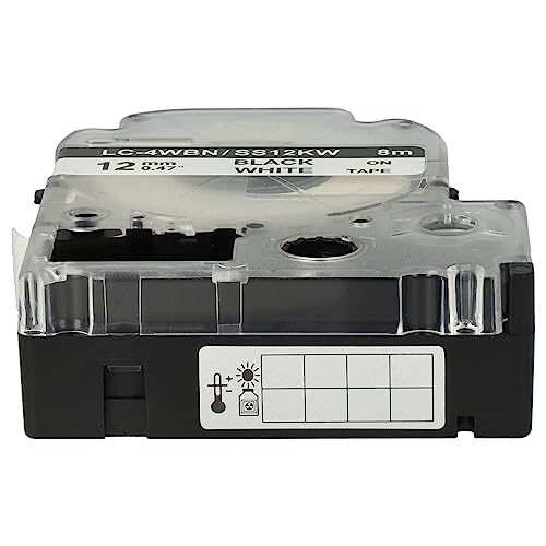 Vhbw 10 x Cartucce a cassetta 12mm compatibile con Epson LabelWorks LW-700, LW-400, LW-500, LW-900P sostituisce LC-4WBN, SS12KW.
