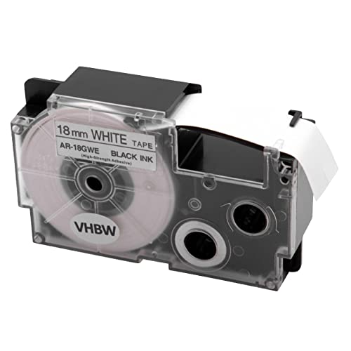 Vhbw cassetta-nastro cartuccia 18mm nero su bianco compatibile con stampante di etichette Casio CW-L300, KL-100E, KL-120, KL-130, KL-1500, KL-200, KL-2000