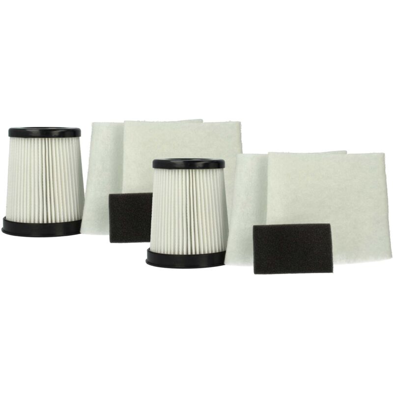 Vhbw - the clever way Set di filtri di alta qualità per aspirapolvere Set da 8 pezzi di vhbw per sostituire rapidamente e facilmente i filtri del proprio aspirapolvere, per garantire alte prestazioni di aspirazione e filtrazione. Il set è costituito da: - 2x FILTRO CENTRALE A LAMELLE - Filtro HEPA per la separazione dei materiali in sospensione dall'aria - Catturano anche le più piccole particelle di polvere - Colore: bianco con supporto nero - Lavabile - Diametro superiore: 60 mm - Diametro inferiore: 76 mm - Diametro dell'apertura: 48 mm - Altezza: 8,6 cm - 2x FILTRO PRE-MOTORE - Catturano le particelle di sporco grossolano prima che l'aria arrivi al filtro principale - Proteggono il motore dalle impurità - Dimensioni (L x l x A): 6,7 x 3,2 x 0,5 cm - Colore: nero - 4x TESSUTO DI PROTEZIONE - Materiale: tessuto non tessuto - Colore: bianco - Altezza: 9,7 cm COMPATIBILE CON: - Dirt Devil M2013-8 - Dirt Devil M2013-9 - Dirt Devil M2013-7 - Dirt Devil M2881 - Dirt Devil M2881-0 - Dirt