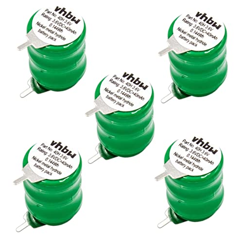 Vhbw 5x NiMH Batteria a bottone di ricambio 2 pin tipo V40H 40mAh 3,6V compatibile con batterie compatibile con modellismo, luci solari ecc.