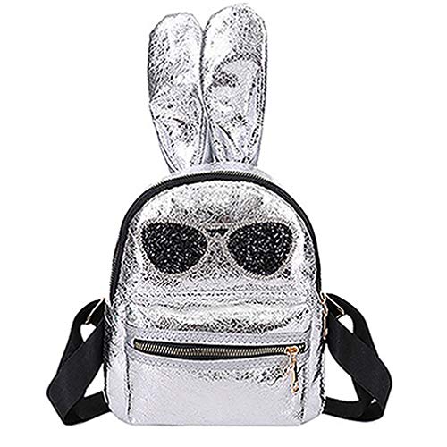 VHVCX Fashion Girl Student Bambino Del Sacchetto Dello Zaino Di Corsa Paillettes Dell'Orecchio Del Coniglietto Student Spalla Diagonale Borsa, Argento