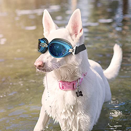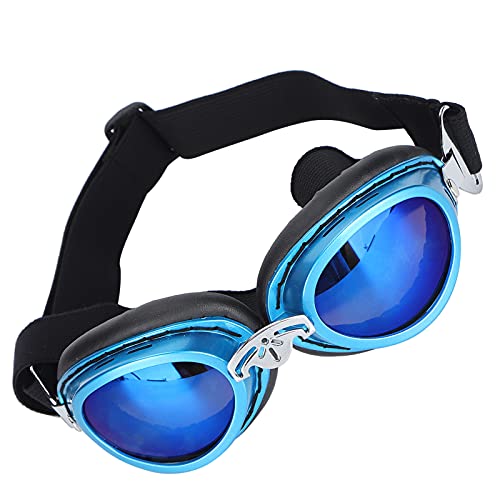 ViaGasaFamido Occhiali per Cani, Occhiali da Sole Regolabili Antivento Impermeabili per Animali Domestici Occhiali Anti-UV Estivi per Cani Occhiali per Cani con Cinghie Pieghevoli per Cani(Blu)