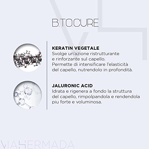 La maschera B.to.cure rimpolpa, ammorbidisce, leviga, ristruttura, rinforza, ricostruisce, ripara, idrata in profondità, mantiene l'effetto dei trattamenti da salone con cheratina Crea una barriera protettiva contro l'umidità, facilitando la pieg