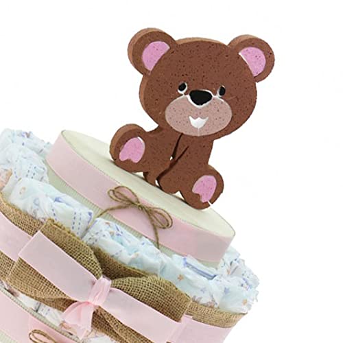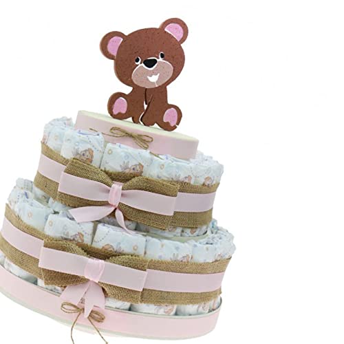 Viale Magico Idea Regalo Economico Neonata, Torta Pannolini Nascita o Baby Shower Orsetto Bimba (Torta da 15 Pannolini)