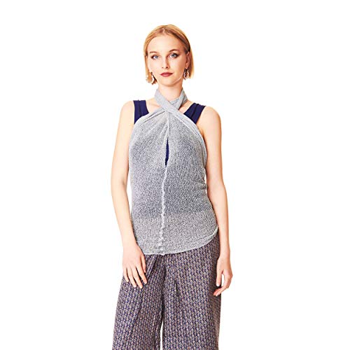 VIALESCARPE - Il Ponchetto Ghiaccio - Maxi scialle in tessuto rayon, morbido, semitrasparente dalla texture leggera e retata. Bordi ondulati. Donna. Grigio. Tg. UNI