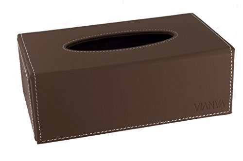 Vianva Professional Grade Tissue Box Holder - Marrone con Cuciture Bianche Chocolate