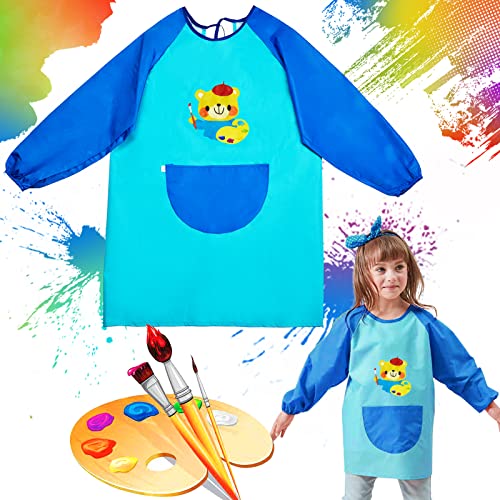 Vibbang Grembiuli per Bambini, Grembiule da Pittura Bambini, Impermeabile Grembiulino, Scuola Bavaglino Maniche Lunghe, Painting Smock per Arte Artigianato Cottura per 6-12 Anni (Blu)