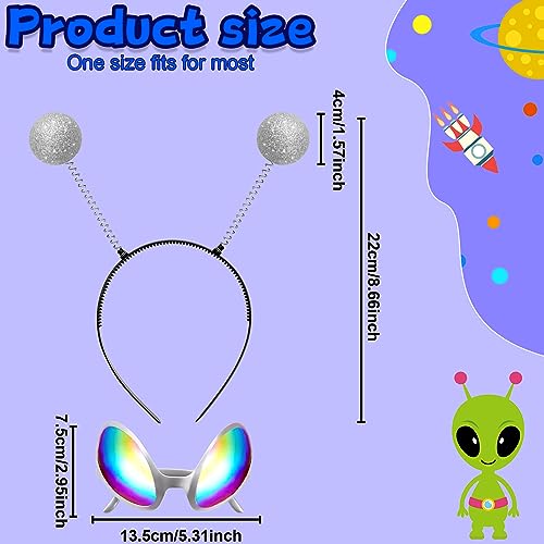 Vibbang 4 Pezzi Accessori per Costume Alieno, 2 Pezzi Alien Occhiali da Sole con 2 Pezzi Antenna Marziana Copricapo, per Halloween, Feste in Maschera e Raccolti Fotografici (D'argento)