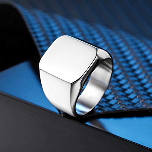 VIBOOS Anello con Sigillo Iniziale con Monogramma Inciso Personalizzato per Uomo Donna Ragazzi Anelli da Uomo in Acciaio Inossidabile, Bundle con Regolatori di Dimensioni Dell'anello (Argento Colore)