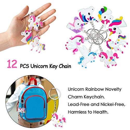 PVC ecologico non tossico: grande flessibilità e elasticità per un uso prolungato. 12 PCS portachiavi Unicorno sfuso ottimo per bambini ragazze ragazzi. Bella decorazione per chiavi di zaini, portamonete, buon divertimento per il ring con unicorno.
