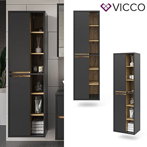 Vicco Armadio per il bagno Viola, Antracite/Rovere, 50 x 170 cm con ante e vani a giorno