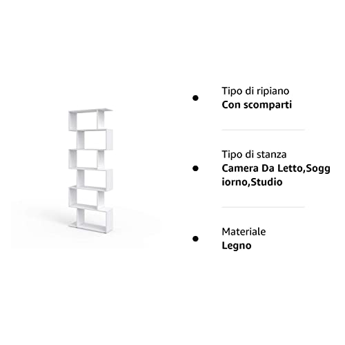 Il nostro divisorio a forma di zig zag è dotato di 6 ripiani aperti e può essere utilizzato sia orizzontalmente che verticalmente. Ideale per esporre libri e oggetti.