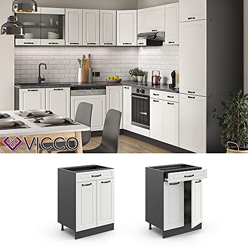 Vicco mobiletto base per cucina R-Line, Bianco casa di campagna/Antracite, 60 cm con cassetto, senza piano di lavoro