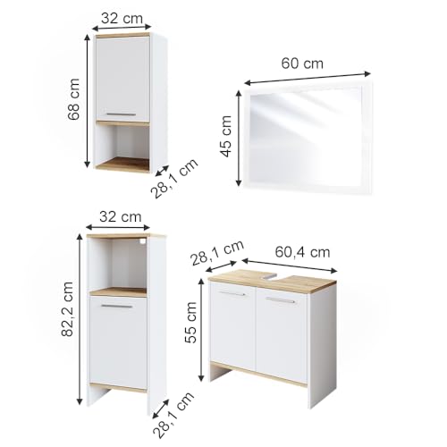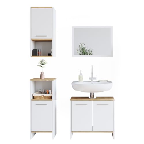 Vicco set mobili bagno Elvio, Bianco/Sonoma, 4 parti