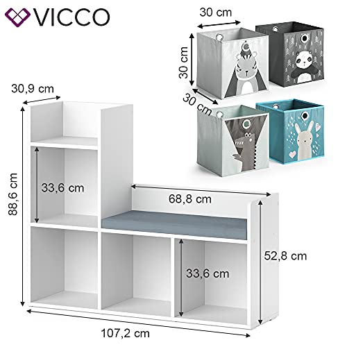 Vicco Scaffale per bambini Luigi, Bianco, 107.2 x 88.6 cm con 2 scatole pieghevoli opt.2