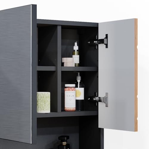 Vicco Specchio Contenitore Bagno Irma, Antracite/Rovere, 54 x 55 cm