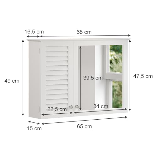 Vicco specchio contenitore bagno Riad, Bianco, 68 x 49 cm con 2 porte