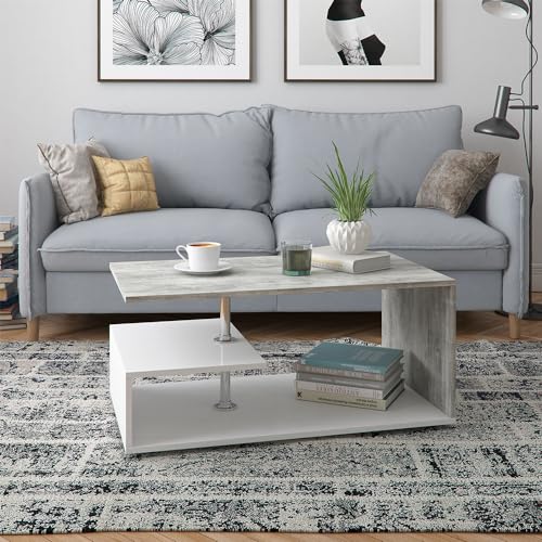 Vicco Tavolino da salotto Guillermo, Bianco/Calcestruzzo, 91 x 41 cm