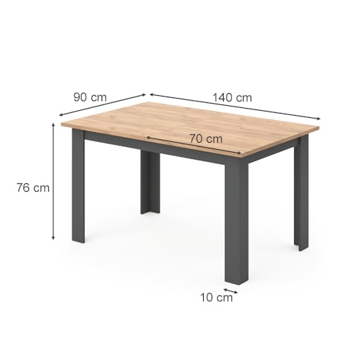 Vicco Tavolo da pranzo Karlos, Quercia dorata/Antracite, 140 x 90 cm