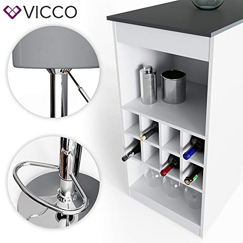 Vicco Tavolo bar con sgabelli Ross, Bianco/Antracite, 115 x 50 cm con 2 sgabelli da bar