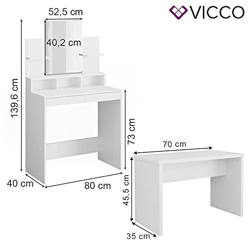 Vicco tavolo da toeletta Ania, Bianco, 80 cm con panca