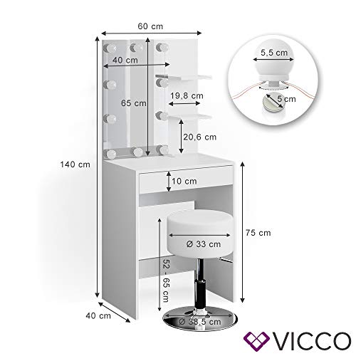 Vicco tavolo da toeletta Isabelle, Bianco, 60 cm con illuminazione LED e sgabello