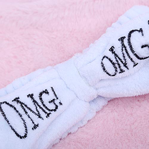 VIccoo Donne Ragazze Spa Fascia Larga Carino Bowknot OMG Lettere Hairband Ricamato Trucco Elastico Flanella Turbante Colore Candy Headwrap 8 Colori - Rosa