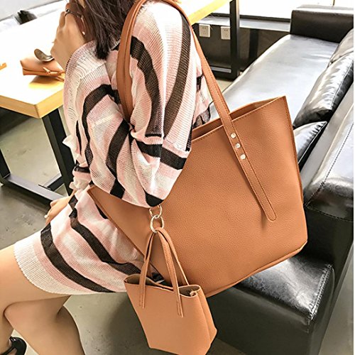 VICGREY 4 Set Borse Donna,Donna Borsa Tracolla Donna Elegante Sacchetto Borsa Borsa Portafoglio Carta Donna Moda Pelle Tote Borsa Grande Capacità Spalla Borsa (Marrone)