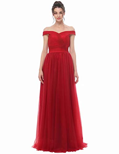 Vickyben - Abito da donna con spalla scoperta, in tulle, da principessa, da sera, da ballo, da damigella d'onore, da festa, personalizzabile grigio. 54