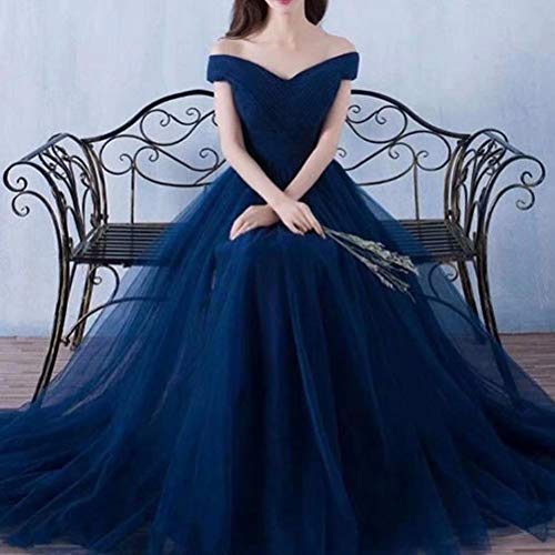 Vickyben - Abito da donna con spalla scoperta, in tulle, da principessa, da sera, da ballo, da damigella d'onore, da festa, personalizzabile Nero 42