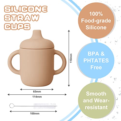 Vicloon Bicchiere per Bambini in Silicone, 150ml Tazza con Cannuccia per Bambini, Tazza da Allenamento per Bambini con 2 Manici, per L'alimentazione del Bambino, con Spazzola per Pulizia, Rosa