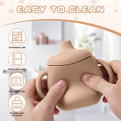 FACILE DA PULIRE: A differenza di altre coppette in plastica sul mercato, il coperchio e la coppetta in silicone sono facili da rimuovere e lavare accuratamente. La tazza di apprendimento in silicone per bambini viene fornita con una spazzola per pulire le macchie in ogni angolo. Lavabile in lavastoviglie, fa risparmiare tempo.