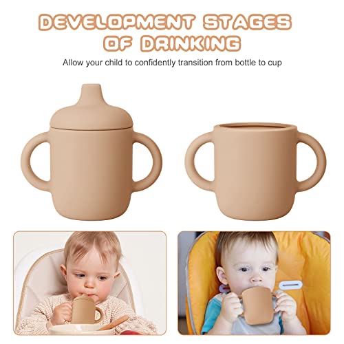 TAZZA DI APPRENDIMENTO PER BAMBINI: Il cappuccio in silicone è filettato per tenere la tazza più saldamente e prevenire perdite. Con 2 manici antiscivolo, i bambini possono tenere facilmente la tazza senza cadere facilmente. La tazza in silicone ha prestazioni stabili, è resistente alla caduta e all'usura e la tazza a prova di perdite in silicone non è facile da rompere.