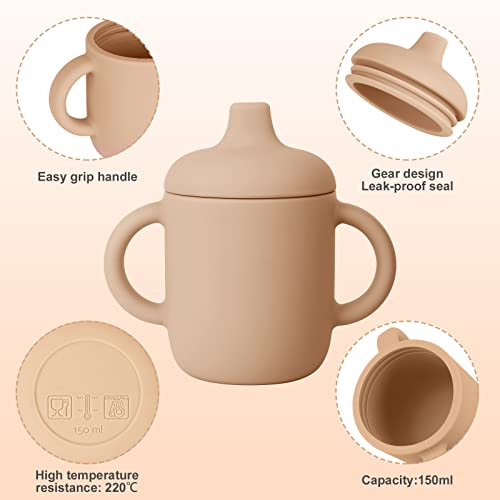 BICCHIERE PER BAMBINI IN SILICONE: Questa tazza in silicone ha una capacità di 150 ml e la morbida copertura del beccuccio a flusso libero sulla tazza in silicone consente al tuo bambino di succhiare e bere facilmente. Può essere utilizzato sia come tazza da allenamento aperta a 360° che come tazza da bere con cannuccia.