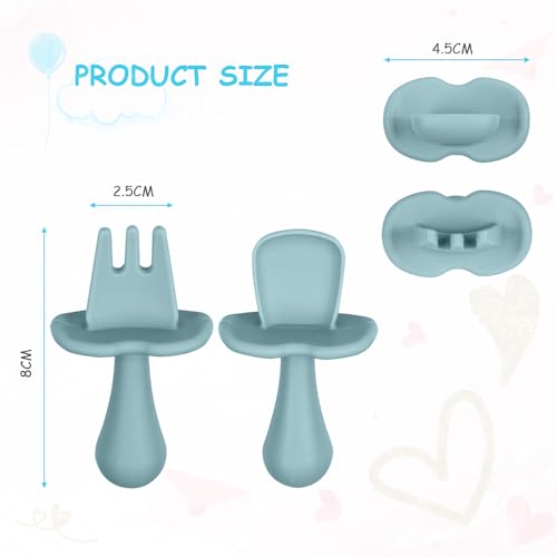Vicloon Cucchiaino Svezzamento, 4PCS Cucchiaio da Bambino Forchetta per Bambini, Forchetta e Cucchiaino silicone neonato, Cucchiaio e Forchetta da Addestramento per L'alimentazione del Bambino