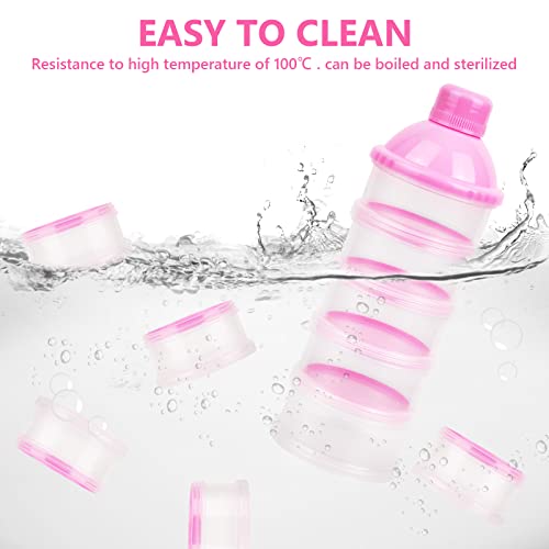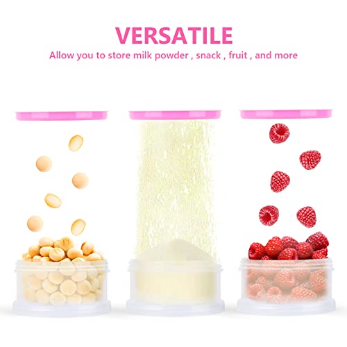 Vicloon Dosatore per Latte in Polvere, 2 Pezzi Dispenser di Latte in Polvere Portatile con 5 Scomparti, Impilabile Contenitore Spuntino e Dosalatte in Polvere per Viaggio, Cereali, Frutta, Rosa