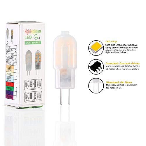 Materie prime di alta qualità: lampadine a luce bianca calda G4, 3000K / 130LM, angolo a 360 °, materiale siliconato rivestito, anti-pressione, resistente al calore e agli urti.
