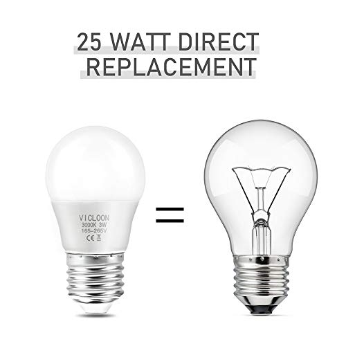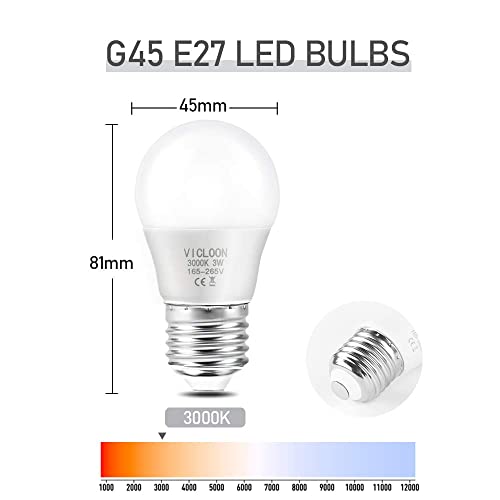 Vicloon Lampadine LED Attacco E27, 3W Equivalenti a 25W, G45 Bianco Calda, 280ML, Angolo a Fascio 180°, Non Dimmerabile- Pacco da 5 [Classe di efficienza energetica A+]